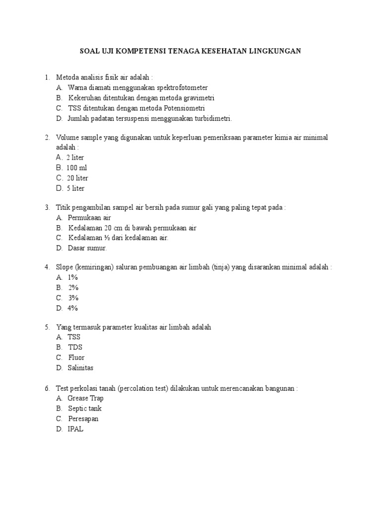 Contoh Soal Uji Kompetensi Tenaga Kesehatan Lingkungan Pdf